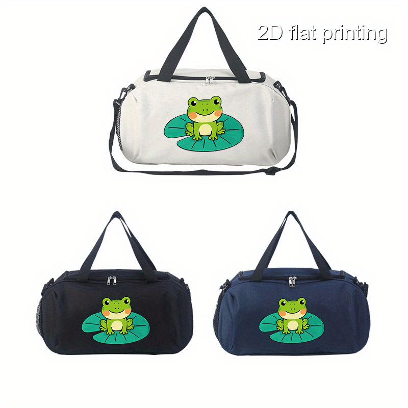 1pc Frog Design Large Capacity Travel Duffel Bag - Durable Polyester Sports & Yoga Tote with Shoulder Strap, Playful Green Frog Illustration, Perfect for Gym, Outdoor Adventures, and Daily Use