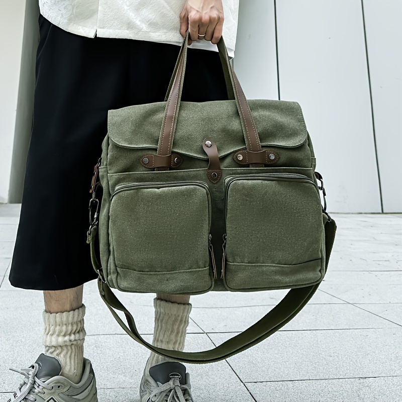 Large Capacity Canvas Multi Pockets Retro Casual Flip Handheld Bag, Fashionable Men's One Shoulder Tote Bag & Durable Backpack for Short-term Travel and Camping