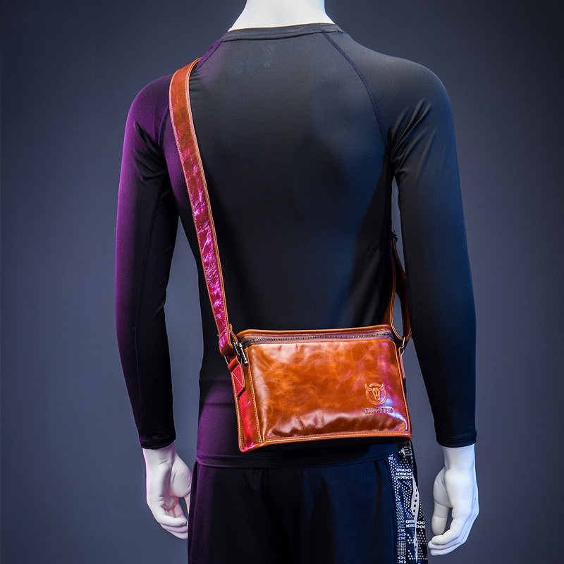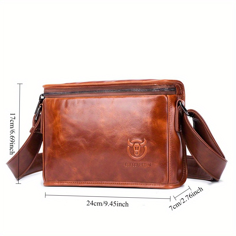 Men's Full-Grain Cowhide Leather Crossbody Bag - Adjustable Strap, Golden-Tone Hardware & Snap Closure, iPad & Phone Compartment - Retro Casual & Business Multifunctional Small Square Shoulder Bag (Black, Durable Everyday Carry)